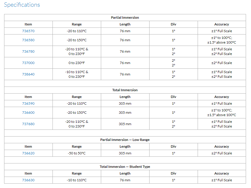 SAMA RANGE Partial Immersion -20 to 110°C (box of 10) | Sper Scientific Direct