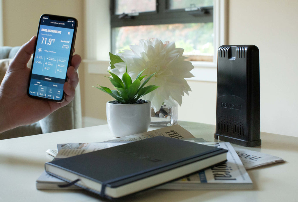 Your WeatherLink Live can be placed anywhere inside with access to AC power and within the transmission range of the transmitting station or stations (up to 1,000'/300 m). You can install the Davis WeatherLink app by searching for it in the iOS App Store or Google Play Store on your phone.